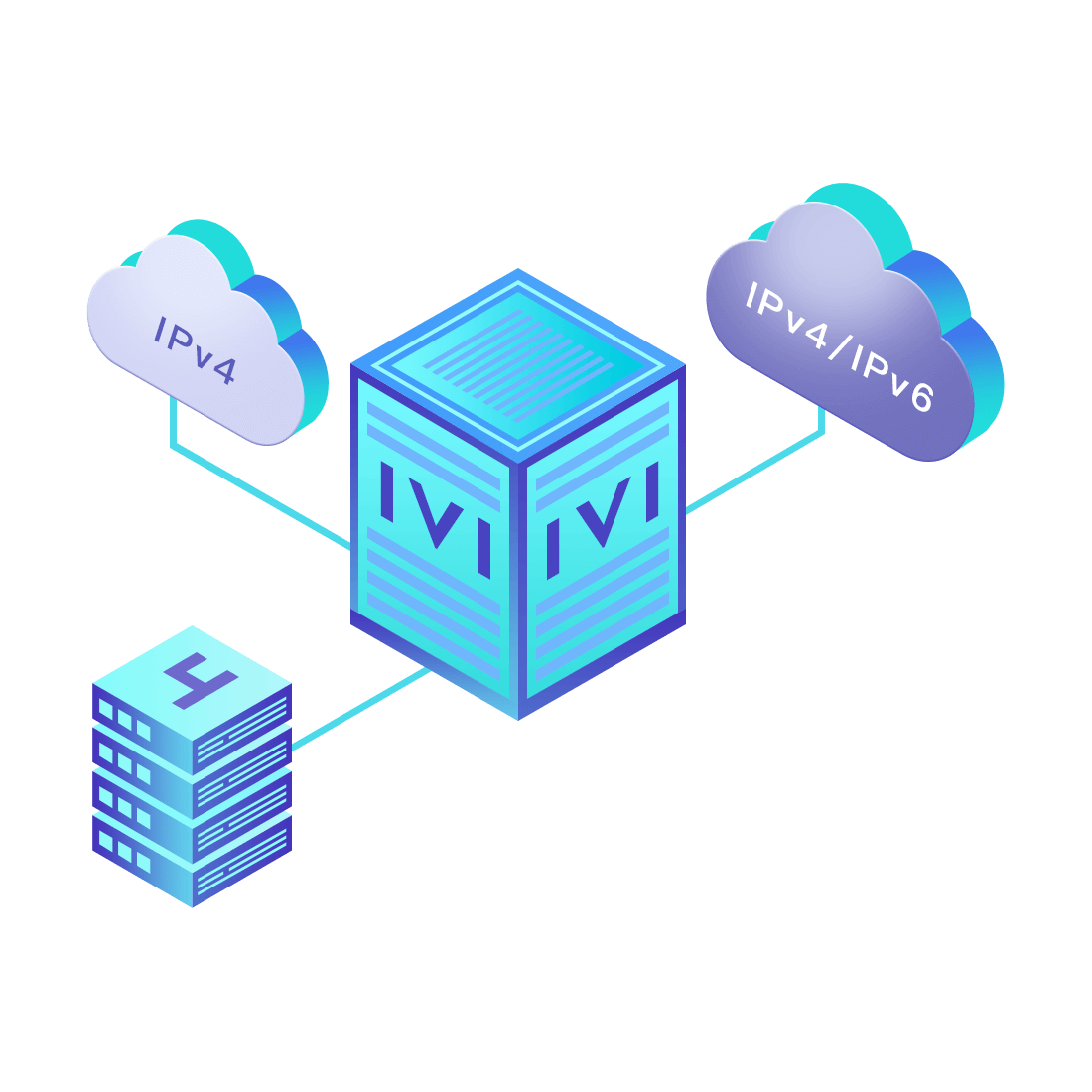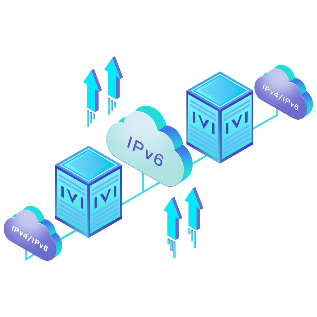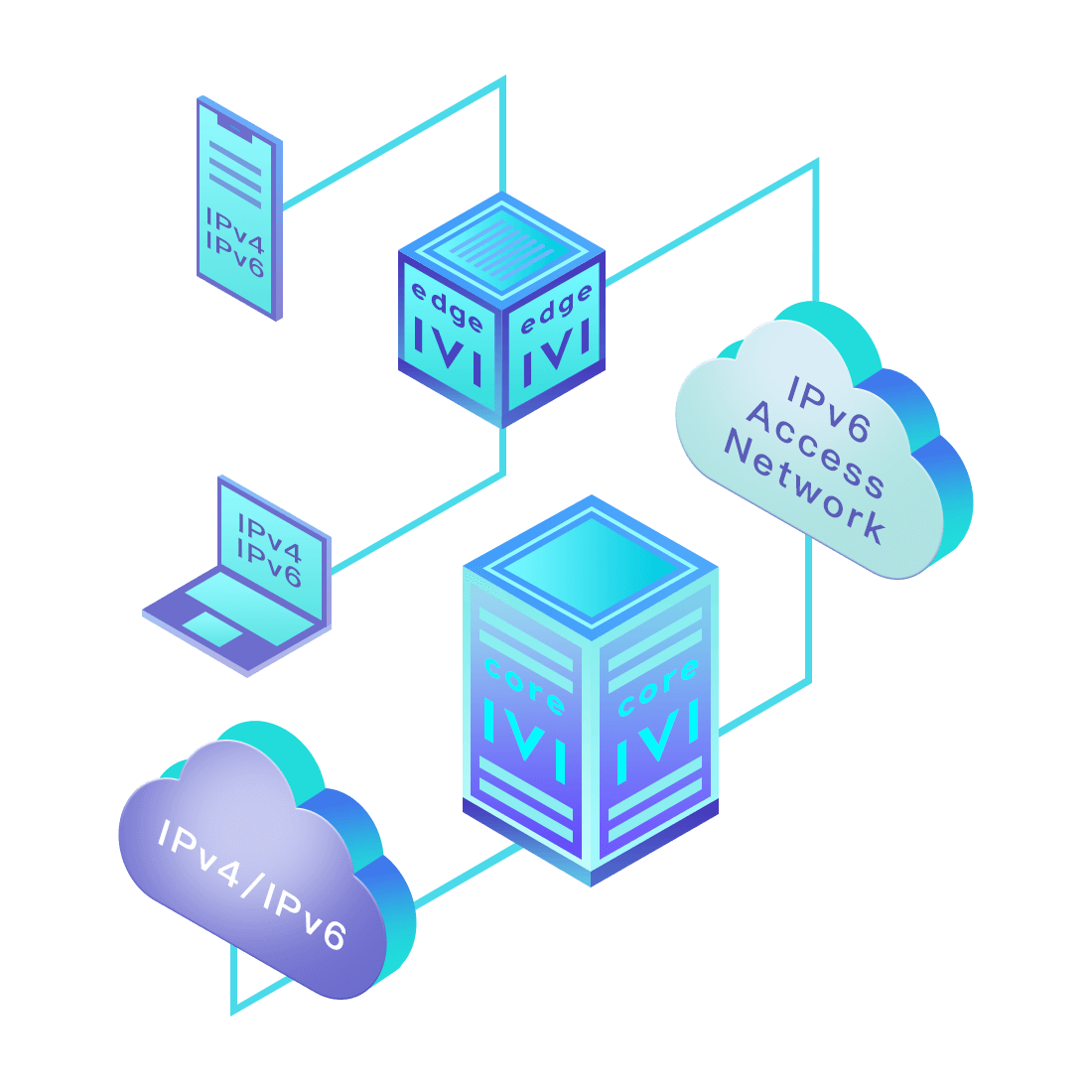 對(duì)正在進(jìn)行IPv6整體升級(jí)規(guī)劃的運(yùn)營(yíng)商,應(yīng)用IPv6升級(jí)方案2.5,通過IVI無(wú)狀態(tài)翻譯技術(shù)和純IPv6接入網(wǎng)絡(luò),為雙??蛻舳撕碗p棧服務(wù)器提供連通服務(wù)。